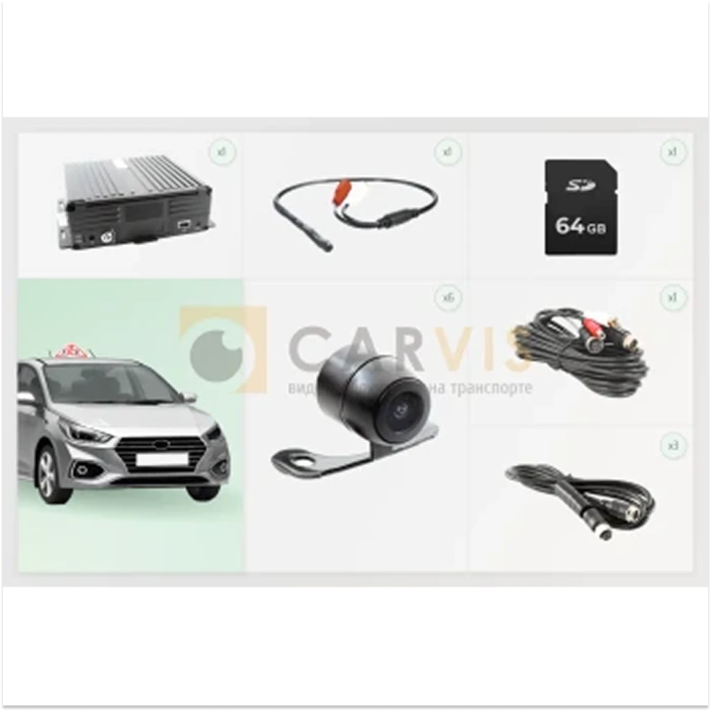 Для обеспечения безопасности и контроля в учебном автомобиле автошколы, можно установить 6-канальный комплект видеонаблюдения CARVIS с шестью камерами, которые будут располагаться как внутри салона, так и снаружи автомобиля.